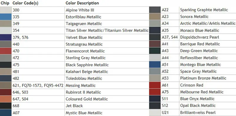 First Name Last Name Best Contact Phone Email Vehicle Information Vehicle type New Pre-Owned New Pre-Owned Year Year 2005 2004 2003 2002 2001 2000 1999 1998 1997 1996. Identifiable via code 381 Le Mans Blue is placed between Avus Blue code 276 and Estoril Blue code B45 in terms of.